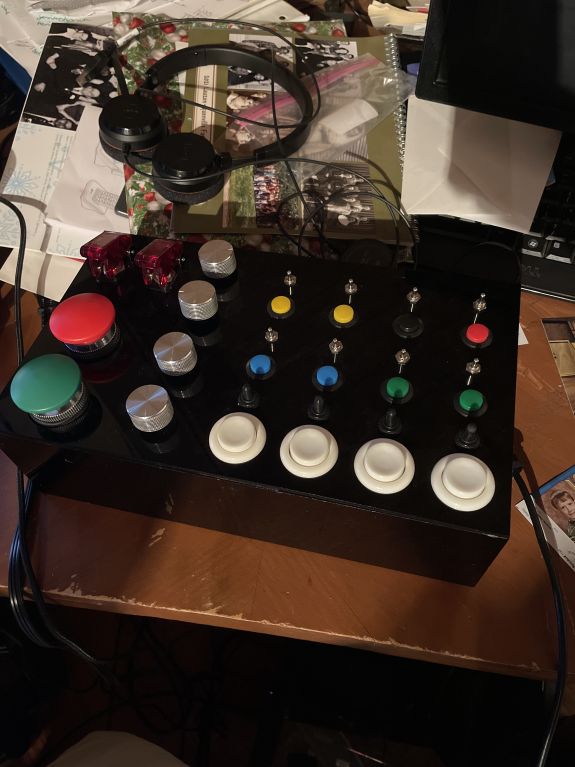 I made a button box which allows me to run code on my computer from the push of a button. I mostly use it for simulation games on my computer. It uses an Arduino Mega and sends messages over a serial usb to my windows machine. Future upgrades could be a native USB driver interface and proper soldering board.